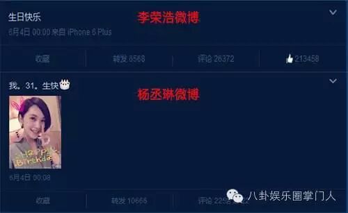去年生日的时候,两个人也是这样很公开的祝福,而且都是在凌晨12点,非常准时!