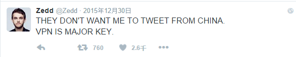 而我天朝跨年演唱会上的嘉宾,也着实让各位欧美粉觉得“茎(jing)涨(zhang)”又“吃(ci)基(ji)”,2016上海Now or Never跨年趴上和各位小伙伴,共同倒数新年的萌猴Zedd牵动了无数少女基友的心,而Zedd此次的中国之行,可谓收获颇丰不仅学会了VPN翻墙发推的高超技术。