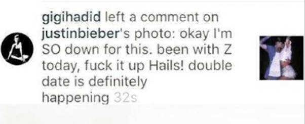 只是最近搭上Zayn的Gigi一个月前还在劝和Jelena,表示要来一场Double Dating这会儿,又在Jailey的亲吻照下留言新的Double Dating Coming Soon,看来Gigi倒还真是不乎对象是谁,人家想要的不过是场Double Dating。