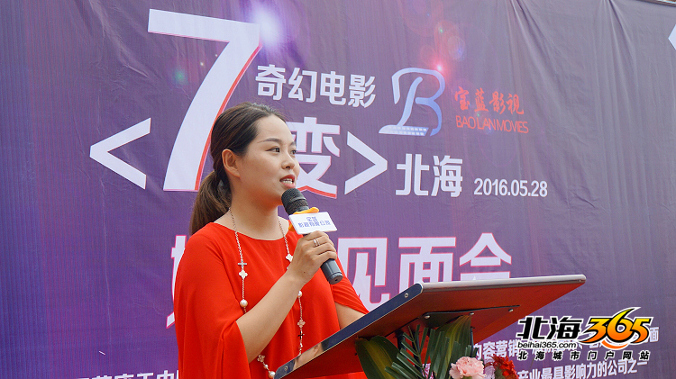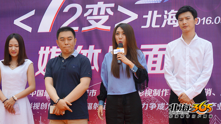 在发布会开始之前,电影出品人、广西宝蓝影视有限公司负责人邱茜,也给大家简单说了一些相关情况,《72变》定在六月初开拍,大概拍半个月,整个电影全部在北海取景,包括银滩、冠头岭、涠洲岛、老街这些大家熟悉的地方,室内戏则主要在21°公馆拍摄。邱茜还说,她一直想打造一部有北海特色的电影,今天这个愿意终于可以实现了。
