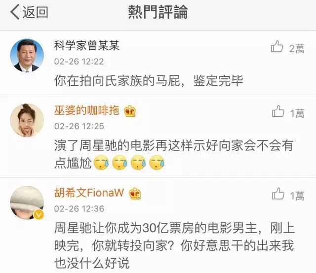 2.前脚刚演完周星驰的电影《美人鱼》,后脚马上去讨好周星驰的对手向太。