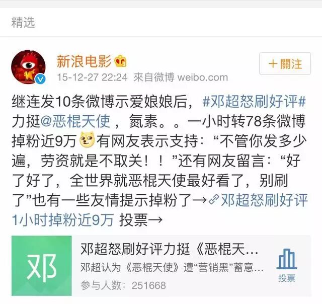 《恶棍天使》差评多,邓超亲自下场在微博转发网友70多条好评。