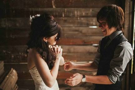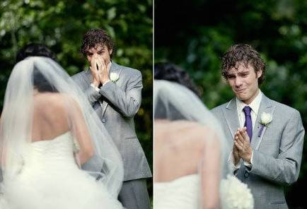 看了那么多组“喜欢的眼神”,这一组是我最喜欢的。当一个男人看到自己的老婆穿上婚纱站在自己面前,那大概是他一辈子印象最深刻的时候。如果他笑得像个孩子,那么,他一定很爱你。