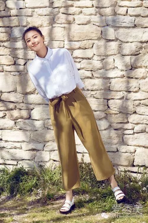 女神高圆圆的几款街拍也很适合夏季,白衬衫配卡其色九分阔腿裤,清新又知性的日系风格,配上女神的微笑,真的很治愈呢。
