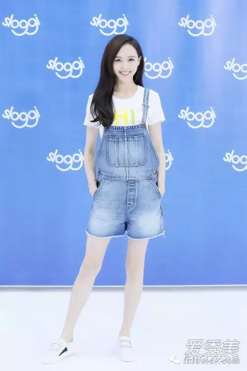 袁姗姗穿牛仔连体短裤配粉色拖鞋,一双美腿也是满养眼,背着黑色双肩包,洋溢青春活力。