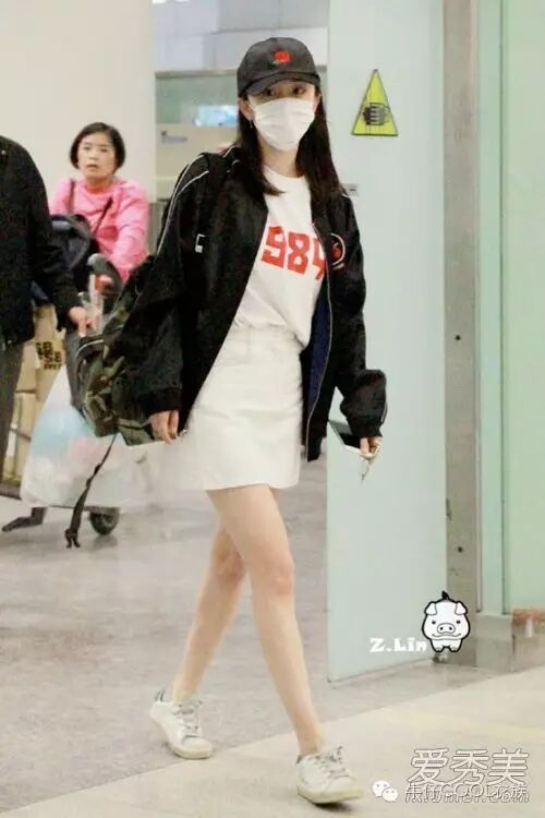 杨幂穿帅气的夹克外套配白T恤和白色短裙,美腿格外吸睛,少女幂名不虚传,又时尚又青春。