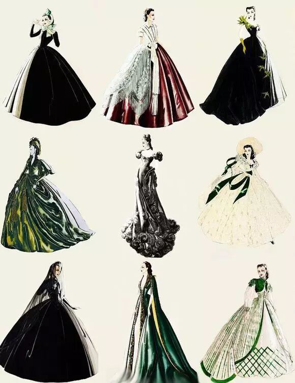 1939年版的《乱世佳人/ Gone with the Wind》中,女主人公费雯丽扮演的Scarlett的华服手稿。实在太美~