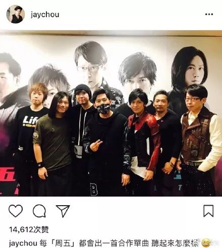 PS:就在小编撰写本篇文章的同时,杰伦在ins晒出与五月天的合照,并配文称:每[周五]都会出一首合作单曲,听起来怎么样~emmmm,“合肥”组合,再这样调戏我们,我们要当真喽!