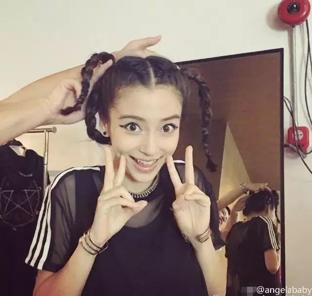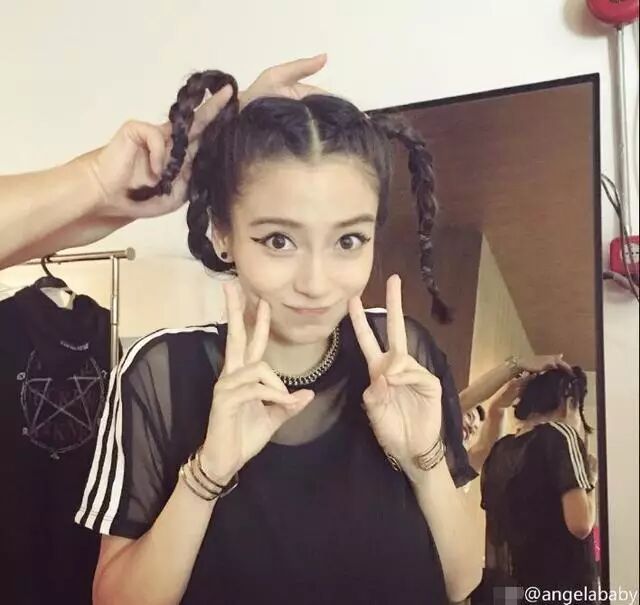 Baby梳着两个小辫子卖萌。 (来自:腾讯娱乐)