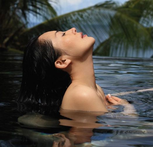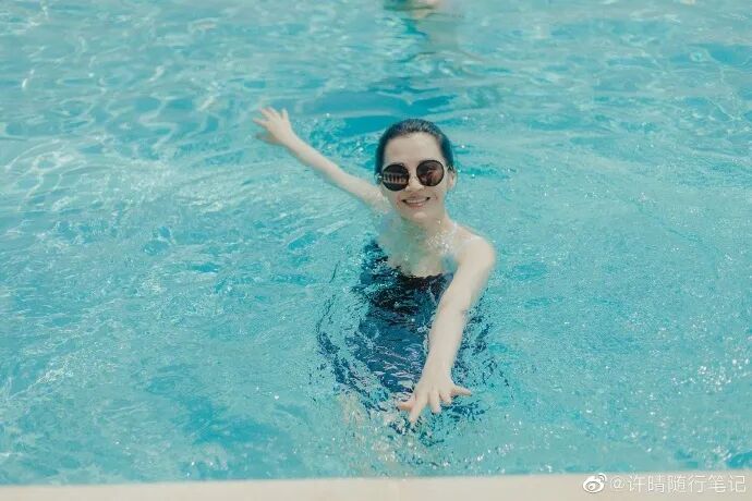 这还真不是我乱夸,你看游泳池里的水也遮不住她那凹凸有致的好身材。(哪像我们,一下水胸部就被水花拍出原型)。