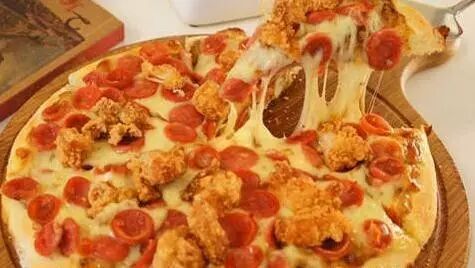 装修简洁,色彩艳丽,对比强烈。pizza可以双拼,同时附送2种蘸酱和整只青辣椒搭配着吃,味道不错。另有鸡翅、芝士条、薯角等小食供应。服务还算勤快,不时来撤盘子、续杯。