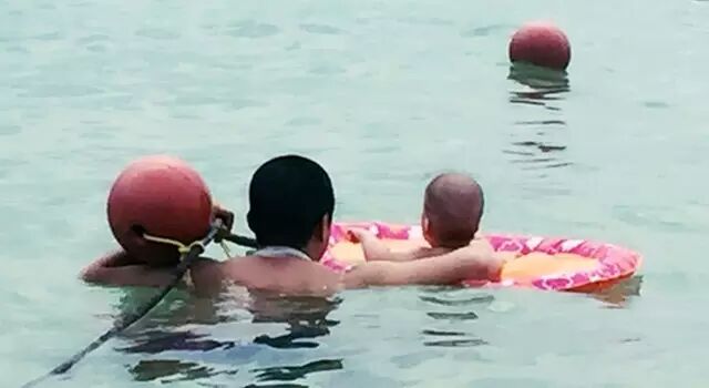 吴所谓在这点上是特别明显的例子,一开始连扶坐在球上都会哭闹,慢慢的可以扶坐在球上情绪很平稳的练习,当动作改成趴以后他又经历了一段适应期,最终才能达到仰卧在球上被动转动。意外的好处是,当他开始练习仰泳(一岁四个月)的时候,适应周期比别的孩子明显缩短了很多。