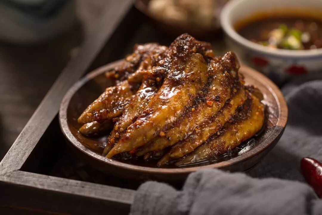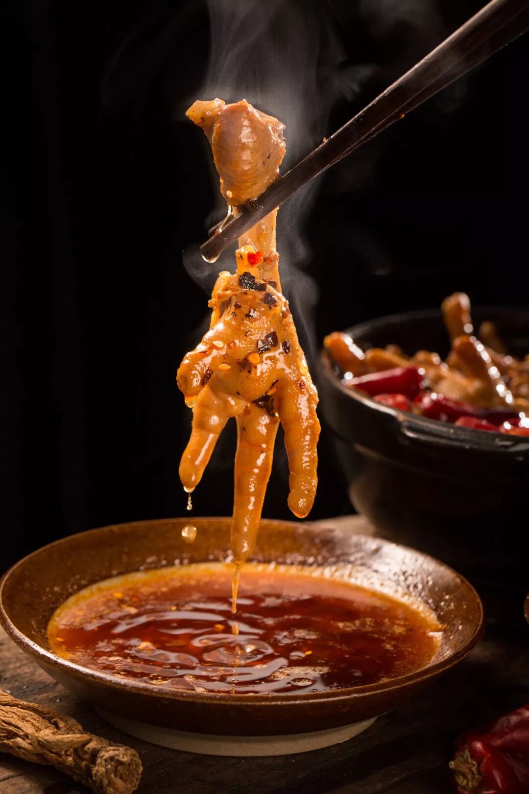 重庆火锅味鸡爪味道偏辣,用筷子轻轻一夹感觉就会把鸡肉从骨头上剔除下来!整个鸡爪看上去像泛着金光,看着就流口水!