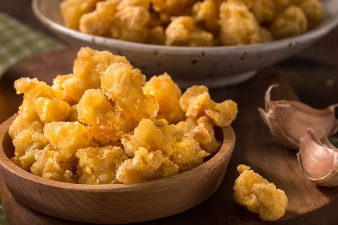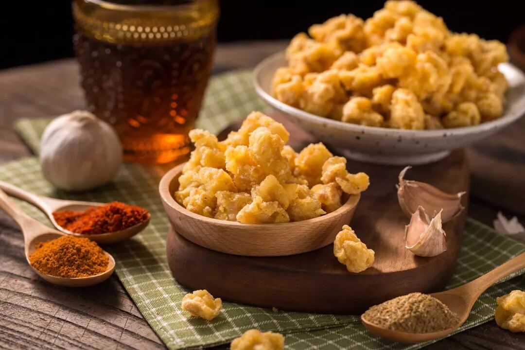 炸至酥脆的掌中宝,配上点辣椒,吃起来脆脆的、特有嚼头,咬开要开里面还会噗汁。