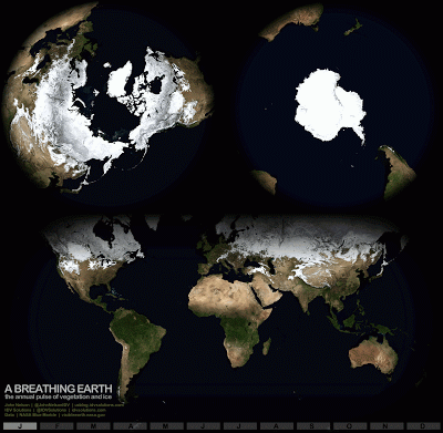 地球一年内的冰川、植被变化
