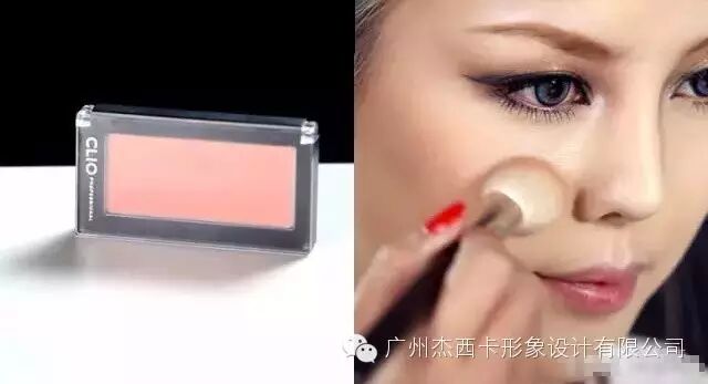 沾取最深顏色掃在陰影處,讓臉部輪廓更加立體。