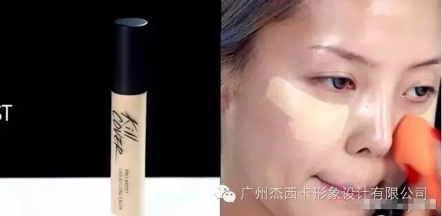 用clio KILL COVER美肌藝術遮瑕液,大面積塗在眼睛下方,同樣用海綿暈開,使膚色更均勻。