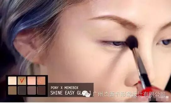 刷子沾取pony第一代眼影盤淺棕色加深眼頭和眼尾