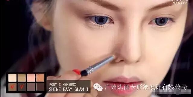 用MEMEBOX x PONY 第一代眼影盤,沾取第二個較淺的顏色,塗在鼻影和眼窩上。