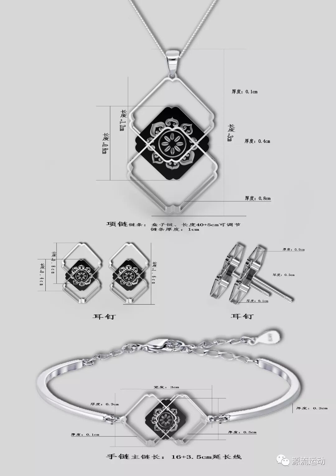 此饰品款式独特,富有传统文化特色。而古今文化的交融,使作品既有宋代的静谧之美,亦不乏当代设计之时尚简约。用强烈的的黑白色突显设计感和古典元素,来体现中国文化无尽生命力,历史的沉淀,和中国式华丽、时尚、优雅。
