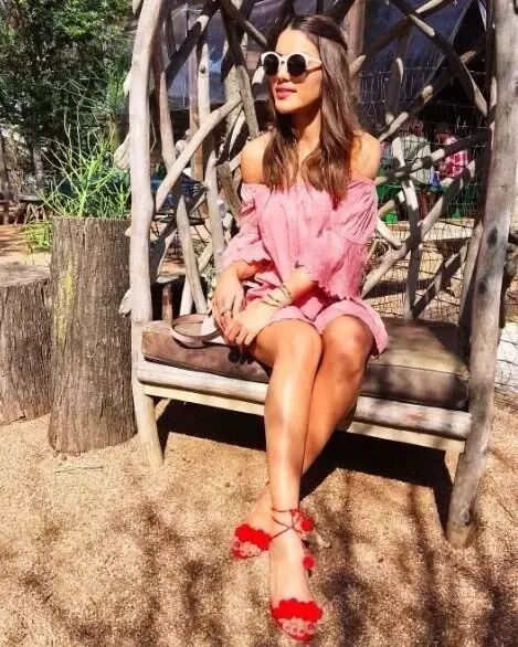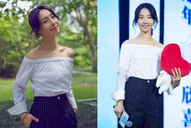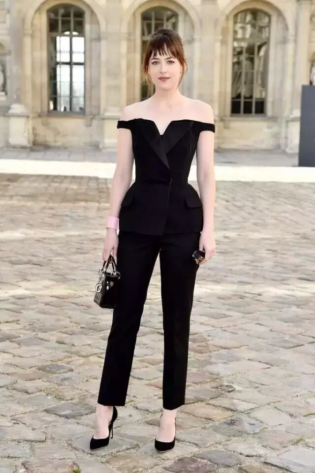 除了一字领,抹胸连体裤也是我们金小妹的爱。
