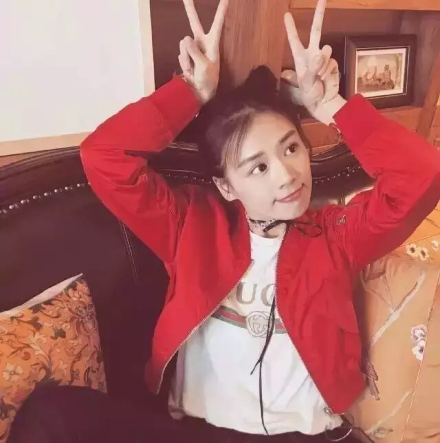 马思纯用这件GucciT恤搭配MO&CO红色棒球衣,凸显好气色,还萌萌哒。
