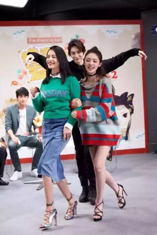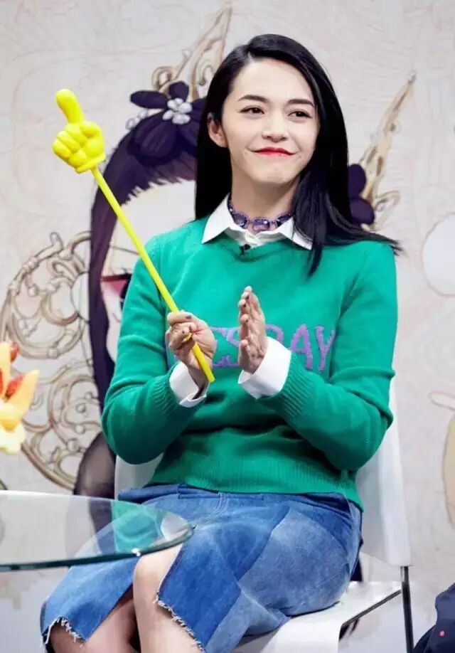 姚晨穿了绿色的星期二,内搭衬衫打造层次感,搭配牛仔裙,轻松减龄。
