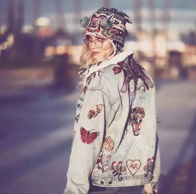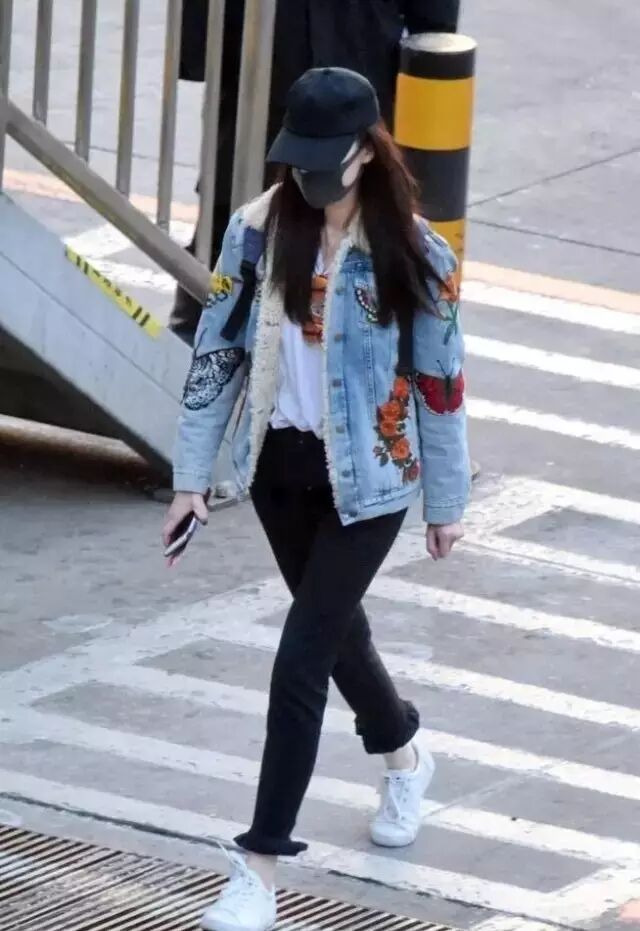 这件Gucci2016早秋系列刺绣牛仔夹克去年就开始火了,开春以来又有很多明星潮人穿出街,各种撞衫也要穿!倪妮穿它配小白鞋。