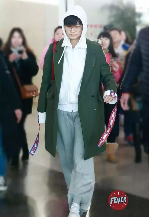 李宇春与肯豆撞衫,搭了件绿色大衣与阔腿运动裤,风格更为随意中性。