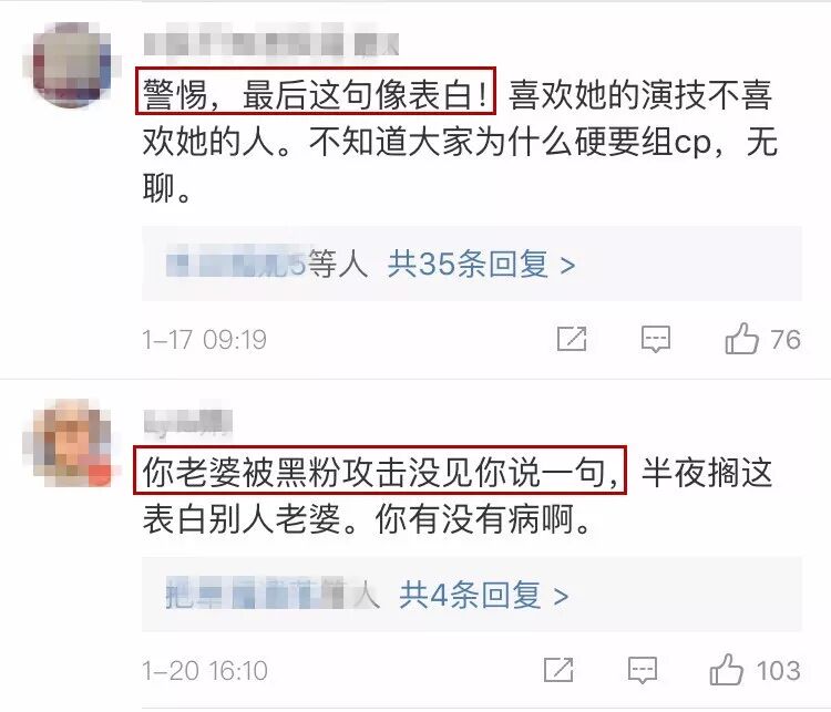 但是吃瓜群众看着是相当不舒服了:你老婆被黑粉攻击不见你说一句,半夜搁这表白别人老婆。你有没有病啊?