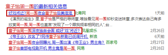 各家媒体的通稿也是相当暧昧有噱头:《好戏将近?周一围夜会章子怡后美滋滋》、《章子怡周一围深夜独自会面,或好戏将近?》