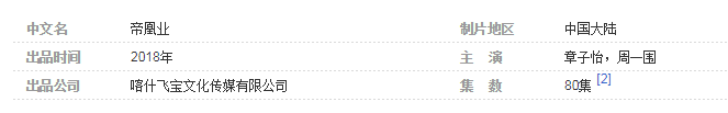 查了下《帝凰业》的出品公司:喀什飞宝文化传媒有限公司。(百度百科也已经将男主确定为周一围)