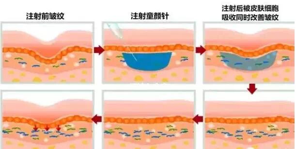 虽然玻尿酸和童颜针在功能上都是填充,但他们的原理大不相同。玻尿酸是将其作为物理填充物填补凹陷;而童颜针是刺激自身皮肤深层胶原蛋白产生,同时激发细胞活力。前者的术后效果谁说是立竿见影,但维持的时间短,需要4-6个月补充注射一次。而后者2周胶原开始增加即可见到效果慢慢体现,外观看更真实,效果更持久。同时,童颜针针对的是全脸肌肤的提升和紧实度。