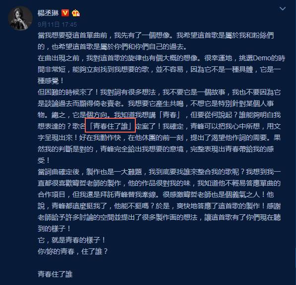 戳“阅读原文”看 杨丞琳的青春里住了谁