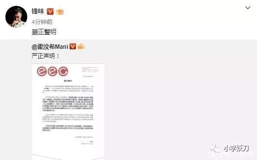 最后经纪人霍汶希还不得不亲自出来发布声明,以正视听,谢霆锋自己也亲自转发了该条内容来辟谣。