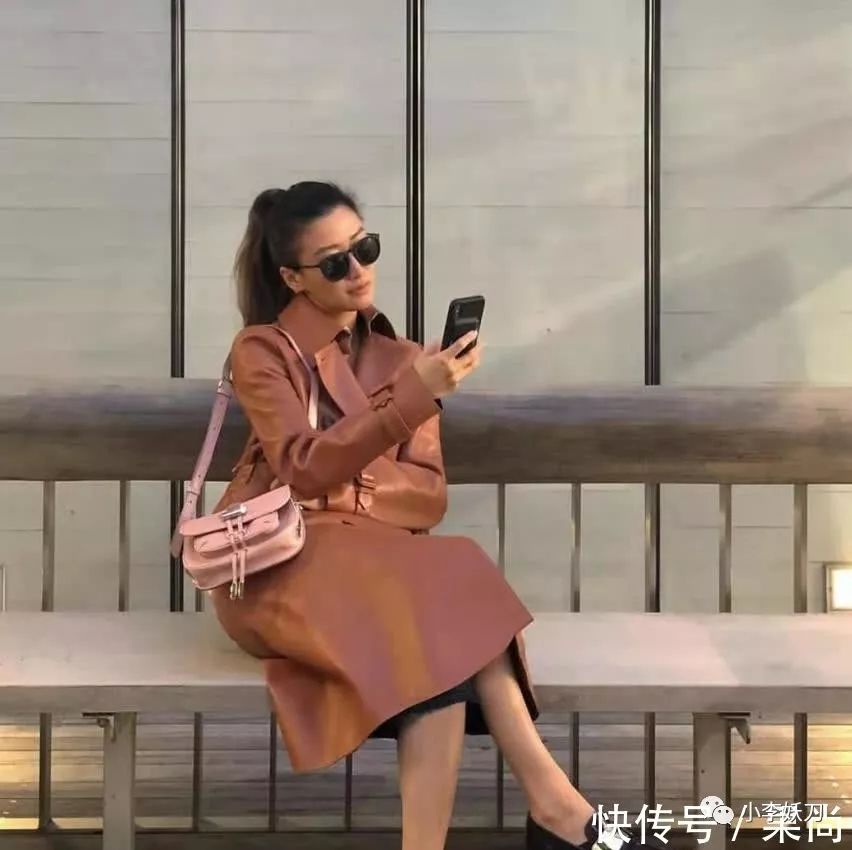 10月22日下午,谢婷婷在社交网络上晒出了一张酷帅的照片,身穿皮大衣的谢婷婷坐在长椅上,偏侧着头,翘着二郎腿,手里拿着手机在看。