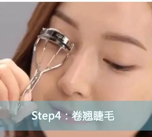Step4:夹睫毛。选择弧度合适的睫毛夹将上眼睫毛稍微夹得卷翘些