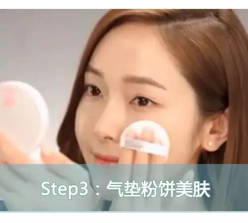 Step3:接着用今年大热的化妆单品——气垫粉饼均匀的涂抹在脸部