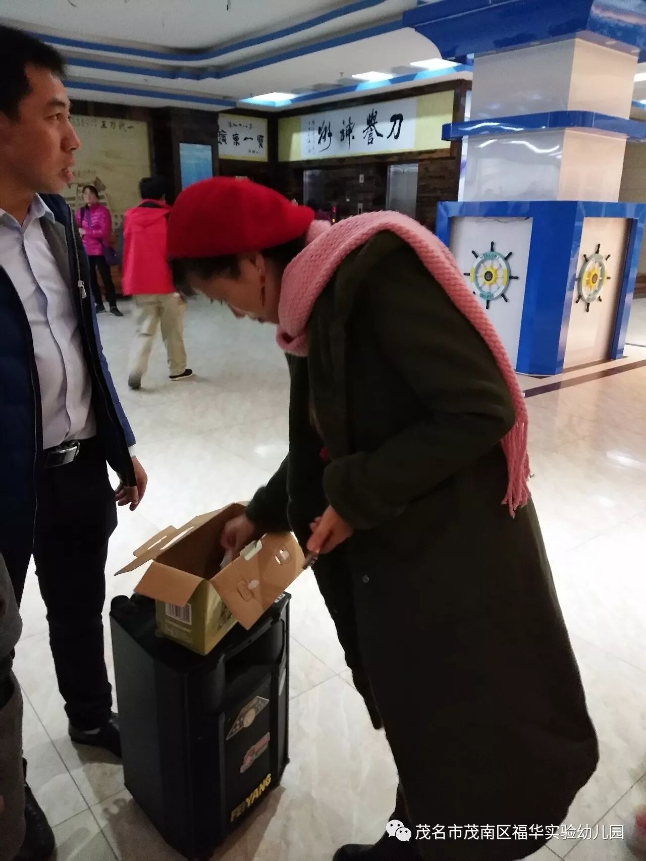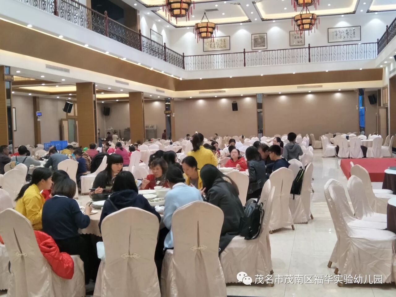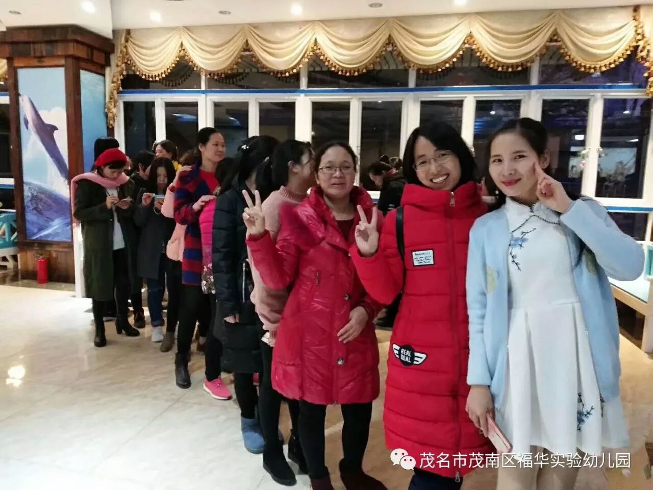 晚上,我们入住海陵岛上的酒店,我们在酒店大厅举办了抽奖活动环节。看,老师们在排着队准备抽奖呢!
