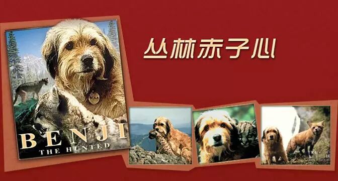 迪士尼于1987年发行了一部十分特別的电影,全片几乎都是由动物所主演,片名是《丛林赤子心》(Benji the Hunted),故事內容是敘述一只名叫Benji小狗的故事。