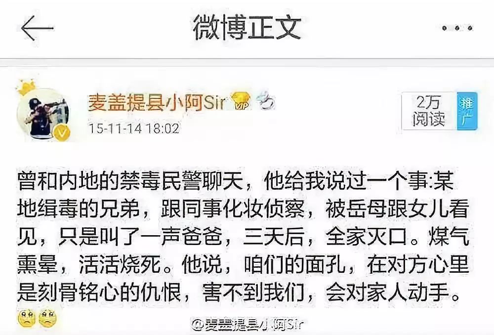我曾看过一个真实故事,一个女孩只是因为在路上叫了一声爸爸(缉毒警察) ,三天后,全家惨遭灭门。
