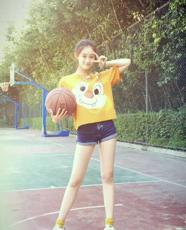 祝绪丹穿着黄色T恤色彩鲜艳十分亮眼,动物印花充满童趣,下身穿着蓝色短裤搭配白色运动鞋少女感十足。