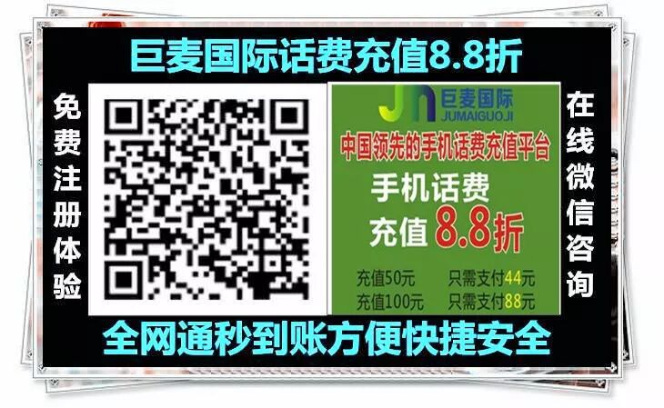 亲:们你还在交昂贵的话费吗?换个平台充话费,自用省钱充50只需要付44省6元,充100只需要付88省12元, 充200只需要付176省24,一次性到账,短信通知,可抵月租,抵套餐移动、联通、电信都可以充,自用省钱,公司承诺充值二十四小时不到账公司双倍返还,赶紧识别下方二维码免费注册体验