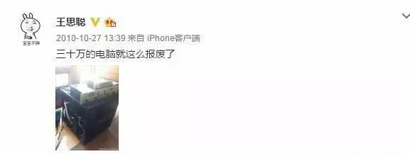 第一条微博是霸气的“30万的电脑就这么报废了”