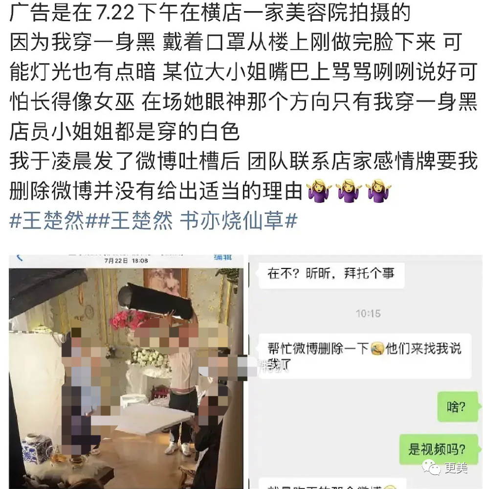 1、有网友在美容院偶遇王楚然,被“骂骂咧咧说好可怕长得像女巫”,网友发帖子吐槽,被联系删稿;