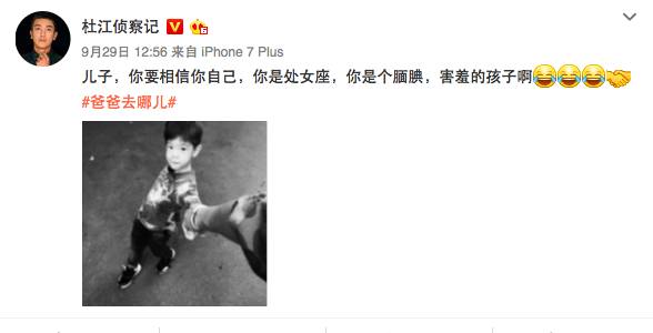 还什么腼腆内向处女座???纵观《爸爸去哪儿》第五季的芭姐只想说:杜江爸爸,你怕是对“腼腆”和“内向:介俩词儿有什么误解吧
