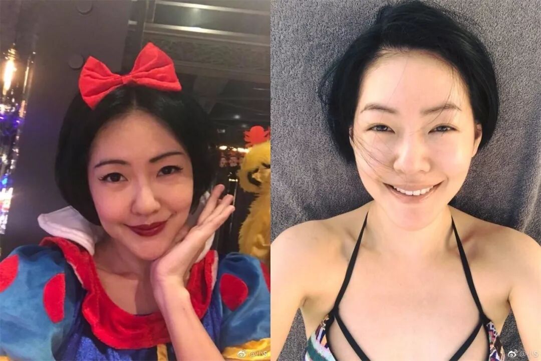 也许是没休息好的原因,小S的眼睛还很肿,有点睁不开的样子。更可怕的是法令纹和嘴角,整体走势都是下垂的,使她看上去老了很多。