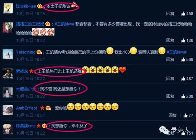 瞅瞅这一水儿的“我想睡你”,“我不管我还是想睡你”,“上王凯热门比上王凯还难”,“本太子妃附议”……