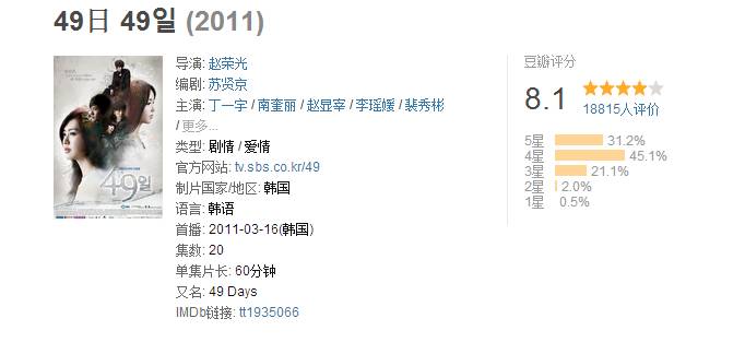 《49日》——实力证实一句网红段子:“你以为你以为的就是你以为的吗?”。这是一部豆瓣评分达到8.1分,却没有火起来的冷门韩剧……诶?直男们别一听“韩剧”就急着跑啊,这部剧据说男女通吃呢。因为《49日》跳脱了韩剧一贯的爱得死去活来的既定圈圈。呈现的是一个亲情、友情、爱情,以及爱与恨交织的,真实到几乎惨烈的世界。