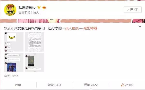 杜海涛的加盟也让其两千多万粉丝认识人鱼线这款减肥应用,蕴藏在其中的用户增量可能惊人。可以预见的是,在杜海涛带领粉丝完成减肥之旅后,人鱼线的品牌将覆盖到更广阔的市场。
